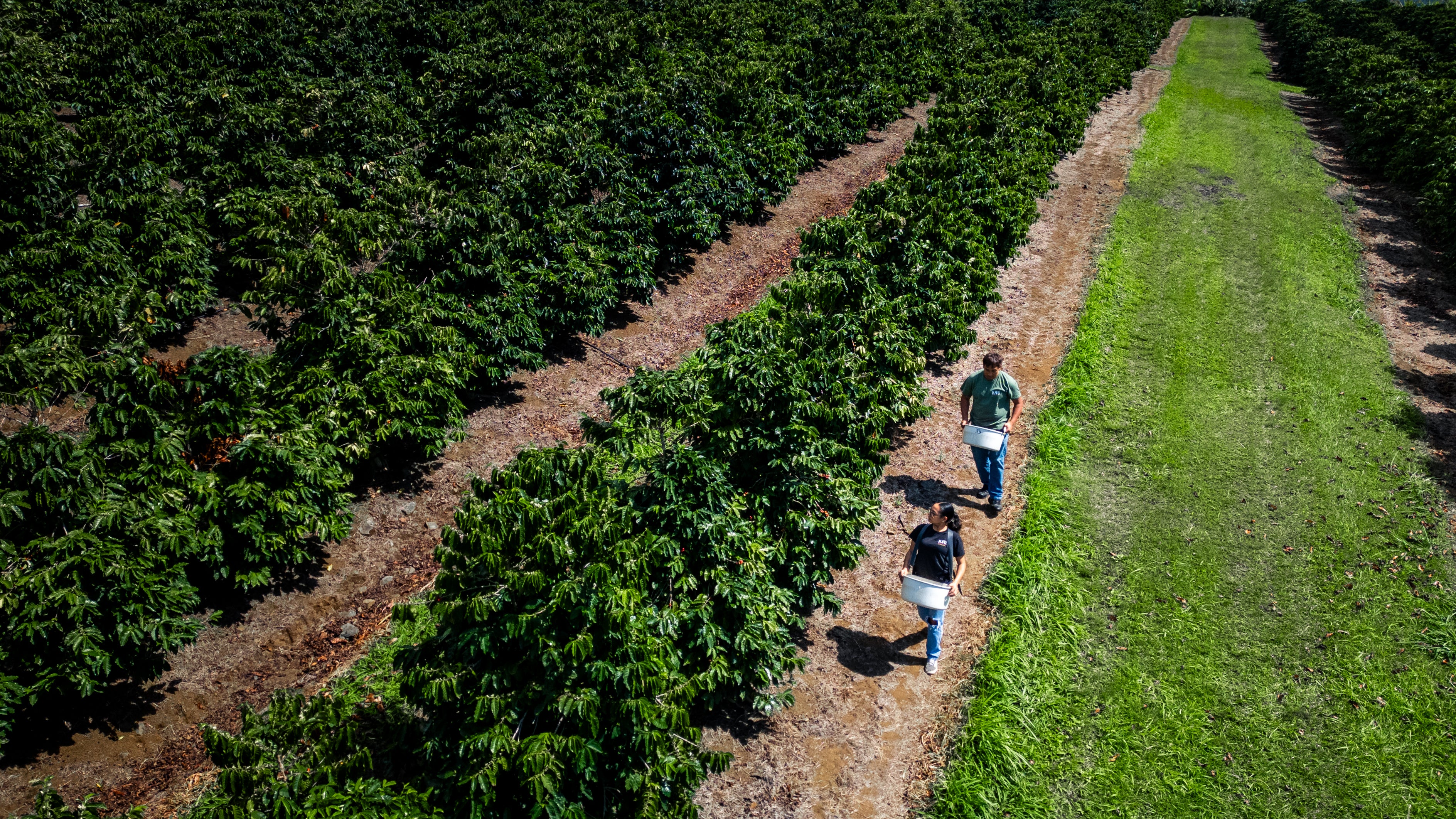 The resulting mixture of unripe and ripe cherries from mechanical harvesting has a huge impact on cup quality. Harvesting season begins in late Summer and continues through the Winter months and into early Spring. We truly believe that hand harvesting is a big part of the hands on process that make Ka'u coffee so unique and special around the world.